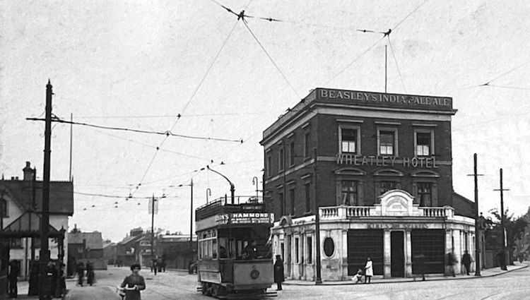Formerly the "Wheatley Arms," the "Wheatley Hotel" was a tied house within the estate of Charles Beasley's North Kent Brewery, Plumstead. Information researched by Jim Packer author of the "Lost Pubs of Bexley." This pub was situated at the top of the Old Pier Road and next to the railway station was known both as the "Wheatley Arms" and the "Railway Hotel." The North Kent Line railway had arrived in 1849 and the premises constructed in 1850 to cater for the railway clientele. John Starling junior was granted a full licence at the annual Sessions on 27th September 1850. He, no doubt, had help from his father who, in the Census taken a few months later, was noted as deriving his living from Funded Property. 1858 licensee George Frederick Webber, a staunch churchgoer, donated the ornate pulpit in St John’s, West Street, as part of the church restoration and enlargement of 1877. Webber also founded the "Royal Alfred" though retaining ownership of this house. The pub became was a tied house to Charles Beasley of Plumstead in 1895. Mr James Buckland, who became tenant in 1896, was sufficiently well off within 3 years to move to The Mount, Bexleyheath, and employ a manager to run things for him, though he did visit every day. Mr Percy Crow, the manager, lived in with his family and nurse and ran the pub for about 4 years. James Buckland died in the winter of 1901 and his widow remarried in the summer of 1905 and ran the pub till around the start of the First World War. In 1932 it was still advertising and selling Beasley's Light and Dark Ales and Stout, Best Quality Wines and Spirits. It also had a billiards room and Garage with up to date roomy cars for hire. Their telephone number was 317. This was another pub to fall victim to road-works; on this occasion to make way for the roundabout at the junction of Walnut Tree Road and Bexley Road. The pub was subject to a compulsory purchase order in September 1977 and the licence was transferred into ‘suspense.’ Before demolition, the local museum rescued (amongst several other items) some finely-detailed architectural cast-iron work, shaped like leaves. Similar ones can still be seen on the "Black Horse" in Sidcup High Street.