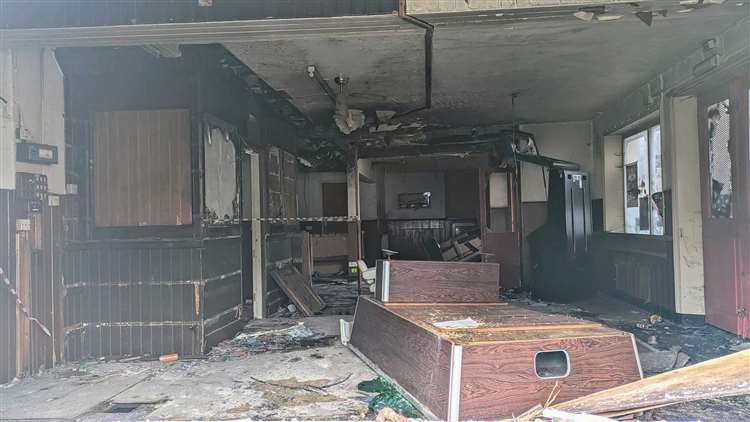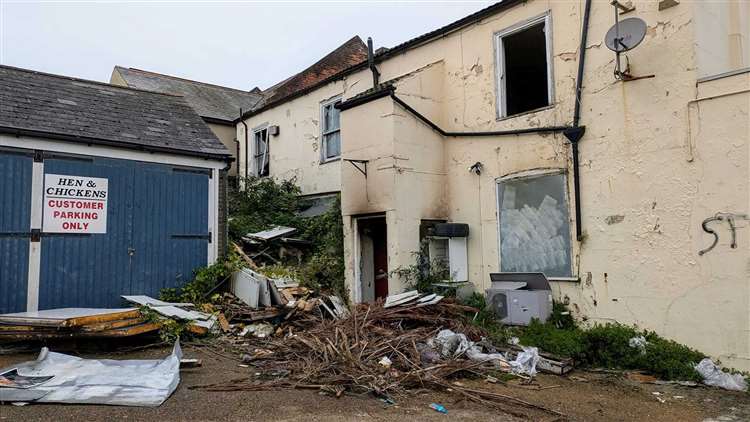 The aftermath of the blaze at the former Hen and Chicks pub.