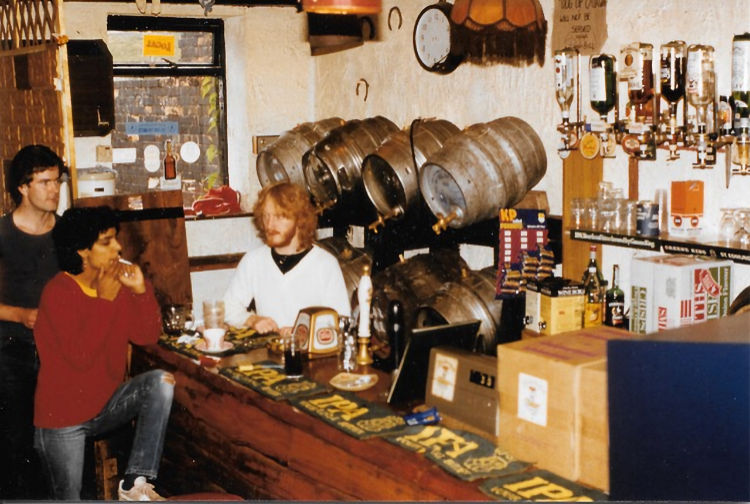 This one has been sent to me by Tony Wells, via a Rob Stevenson, CAMRA member of the Brighton and South Downs Branch, who says the following:- I attach a pic I took when visiting a tiny bar in Rochester perhaps as long ago as 1980 (not sure of the exact year) in the hope that someone might recognise the place or barman. I am clearing out old photos and thought I'd try to learn more about this lovely friendly bar, before dumping the picture. So, over to you, does anyone recognise it? Suggestions coming in say it's the "King's Head" wine bar, which was next door to the "King's Head" in the High Street and later became the "Jolly Knight." Bill Vincent is the barman.