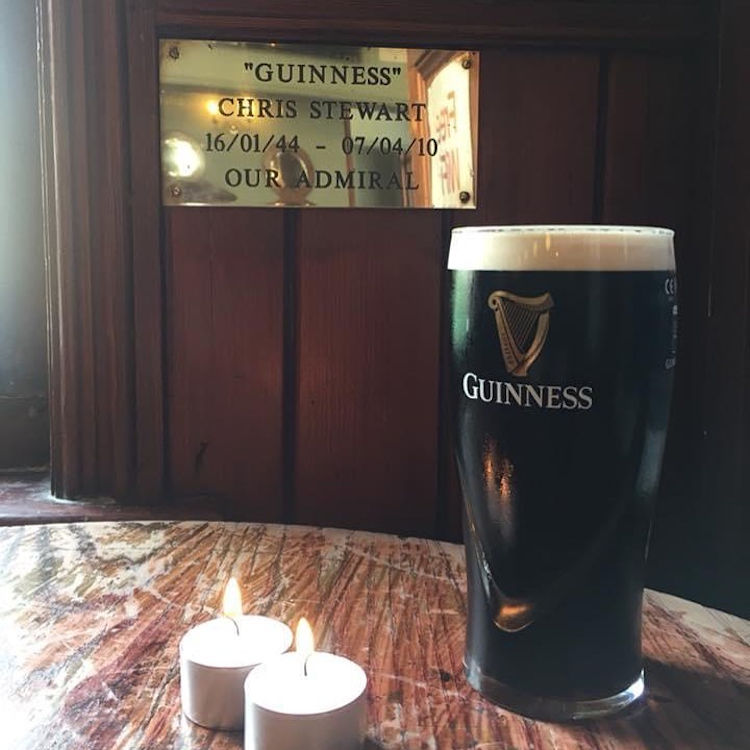 admiral, Blackie put up a plaque at the table that Chris sat every day