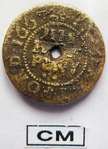 It is halfpenny token dated 1667 and issued by Robert Taylor of