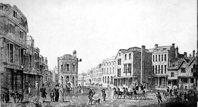 Above engraving, 1829, showing Market Day in the High Street, Jennifer