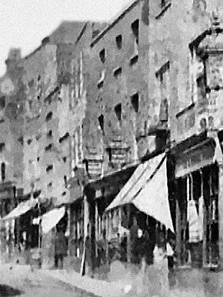 Situated to the left of the "Horn Tavern" in the top picture.