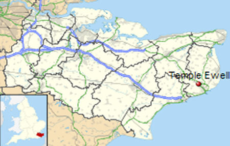 | Near Alkham, Ashley, Dover, Ewell Minnis, Kearsney, Lydden, River, Whitfield. |