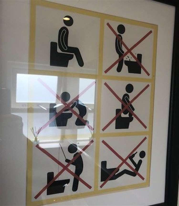 porch, there was a poster advising gentlemen how to use the toilet. I