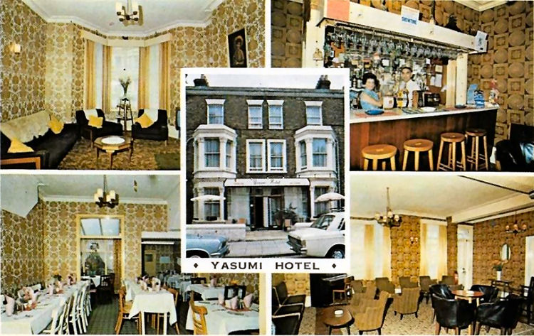 I am told that the name of the hotel Yasumi is Japanese for "Sleep well." From the postcard, which is all the information I have on the premises at present, you can see a bar, so they would have had to have a drinks license, but whether the hotel was open to the public and not just those residing there is yet unknown. Local information required please.