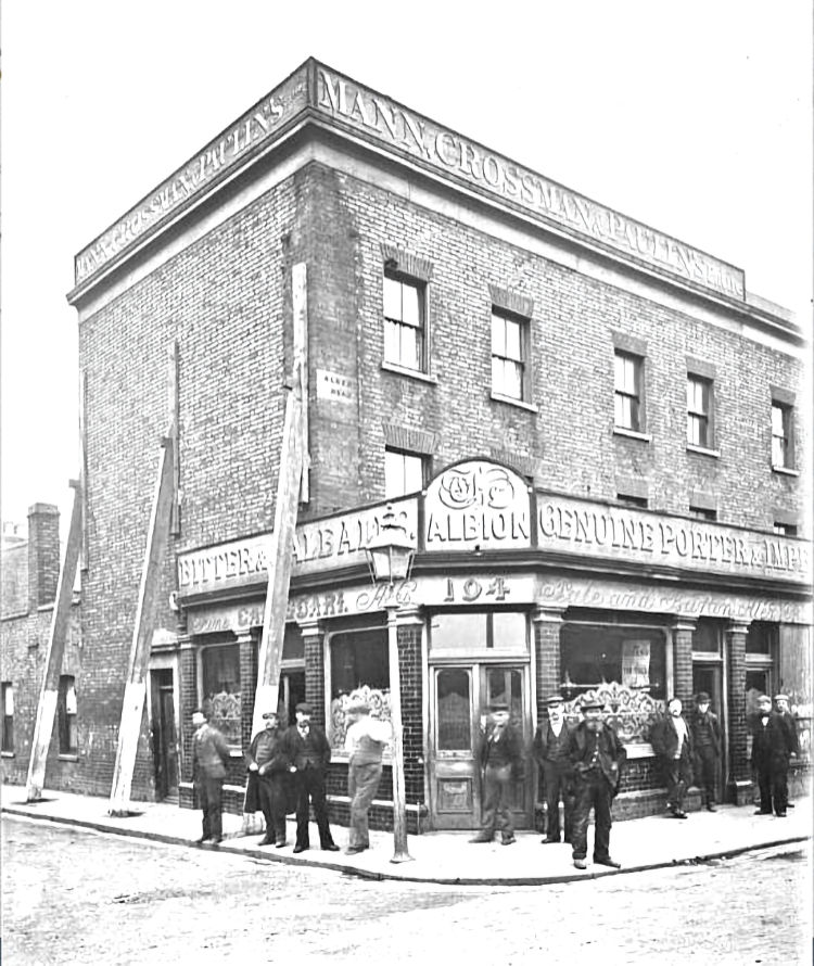 Locally known as the Cowshed, can be traced back to 1874. The pub was damaged in a 1944 air raid. The area around it was flattened but the pub remained defiantly upright. It continued to trade as a public house then became little more than a basic cafe. It was finally demolished around 1957 as the area was rebuilt into housing known as Albert Walk.