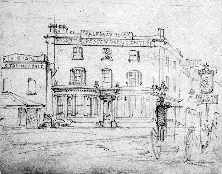 Only information for this one is that it was situated on the Greenwich Road and the engraving is 1847. The name Brown can be seen over the door, who I assume is the licensee.