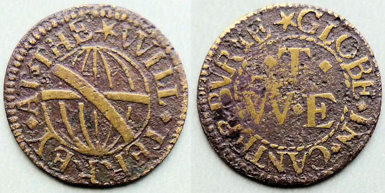 Possibly a public house, location unknown. I do know of another two premises with the name "Globe" in Canterbury, and if this is a public house could well refer to one of those. However the Arms shown could just be a Guild Crest and not Arms as is public house, as these tokens were popular for both types of establishments during the 17th century, and were used to pay for goods in the premises named.