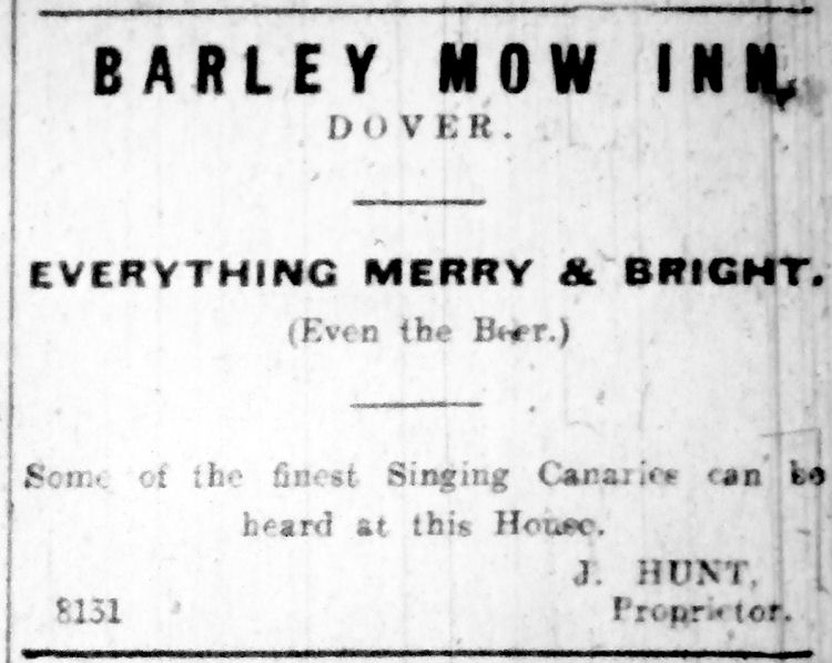 Mr. James Hunt, for 13 years licensee of the "Barley Mow" Inn, Dover, is
