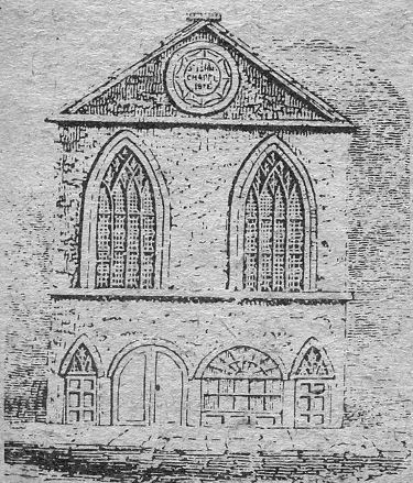 Two views of the interesting St. John’s Chapel or St. John’s Mariners’ Church, as it was sometimes known. It was built in 1823 and stood near the National Sailors’ Home, in Blenheim Square, pictured in a previous illustration. It is seen left, in an 1841 print, in what was probably its original form and right, with two doors only, as later altered. The second picture is from an original wood block engraving and close examination will show the grain of the hard wood. The chapel was at one time used by the Rev VV. S. Cole, minister of Holy Trinity Church and later for 22 years by the Rev William Yate who, sometime after January 1867, carried out various improvements.