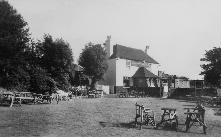 Black Horse showing their garden now occupied by a car-park. All old