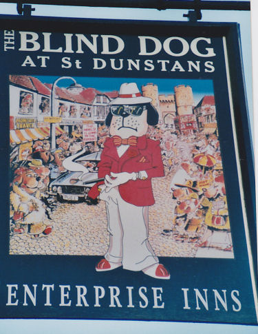 In 1997 the "Tap and Spile" changed name to the "Blind Dog at St. Dunstan's," this being the third change of name since 1997 when it was originally the "Rose and Crown." However, this didn't last long either as in 2001 it again changed to the "Unity." I believe the pub was named after Canterbury Rock Group Caravan's title track to their 7th album, released in 1976. The pub used to frequent the pubs in the St. Dunstan's area and very likely drank in this one before it had this name. At the end of the track you can hear two voices and dogs barking saying the following:- "First voice: "What are those two doggies doing over there?" Second voice "Well, the doggie in front is blind and his friend behind is pushing him all the way to St Dunstan's"