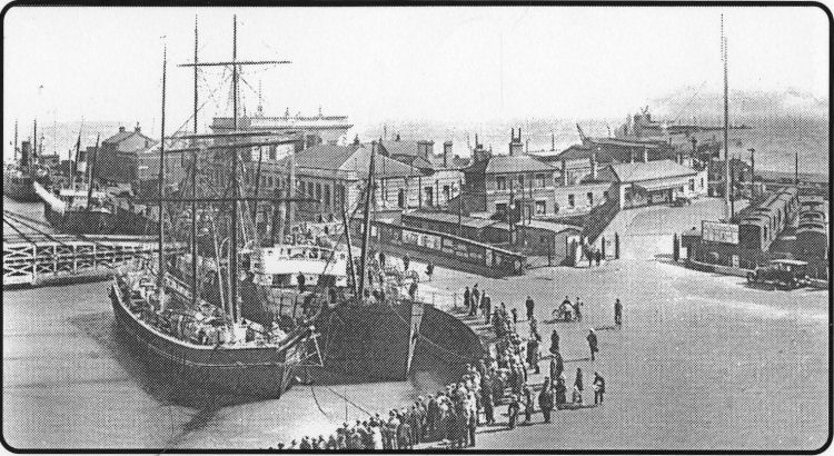 THIS fine thr^-masted sailing ship alongside a steamer inside the harbour