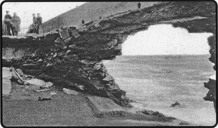 and ripped a hole through the seawall Mountainous waves pounded sea defences