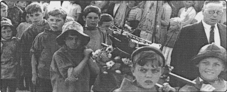 traditional "Blessing of the Fisheries" parade. Fishermen's sons in the