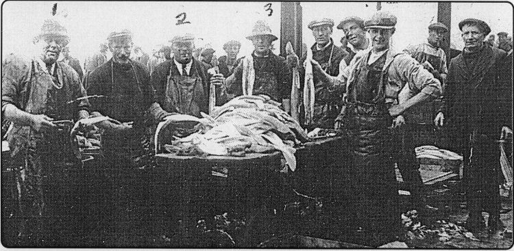 pictured right - at the Fishmarket, skinning huss for so much a score.