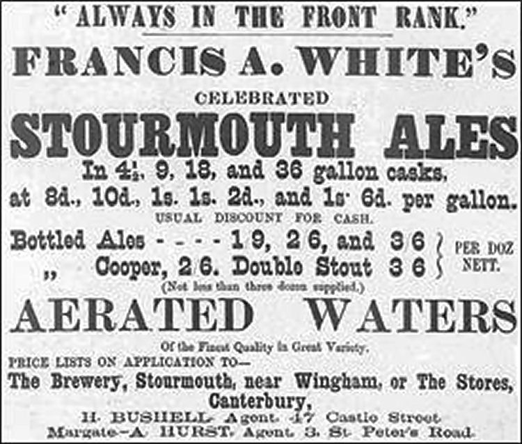 Francis Alexander White, Stourmouth Brewery, near Wingham, Kent, with 11 pubs and a malthouse, by Flint & Sons Ltd., Canterbury.