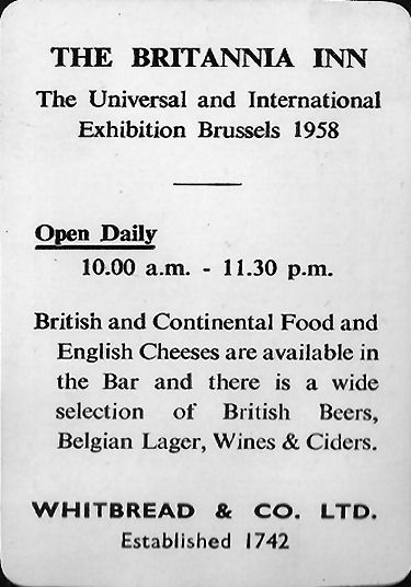 'The Britannia' inn which was built at the EXPO58, Brussels. I thought you might be interested to know that I have the actual inn
