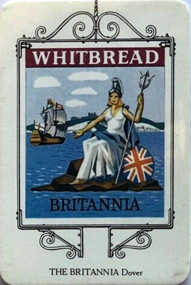 traditional inn sign - Britannia against the famous White Cliffs of Dover and