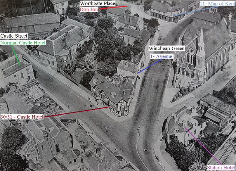 Above photo showing the "Castle Hotel" left and "Station Hotel" centre