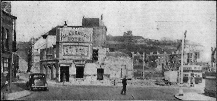 Above photo shows the Clarendon Hotel 1950, just before demolition. The White Cliffs Cafe is shown on the left. |