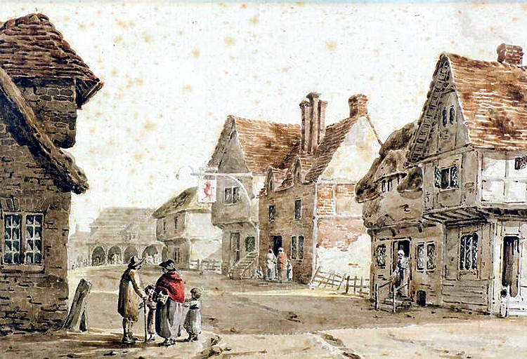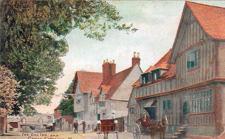 the right of the Dog is c.14th century and called Canon Cottages, or the