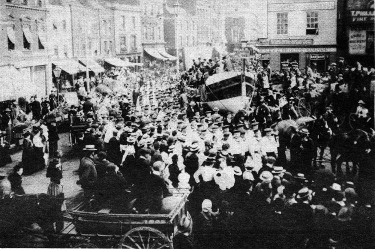 marched alongside an old Dover lifeboat, drawn by a team of six horses,
