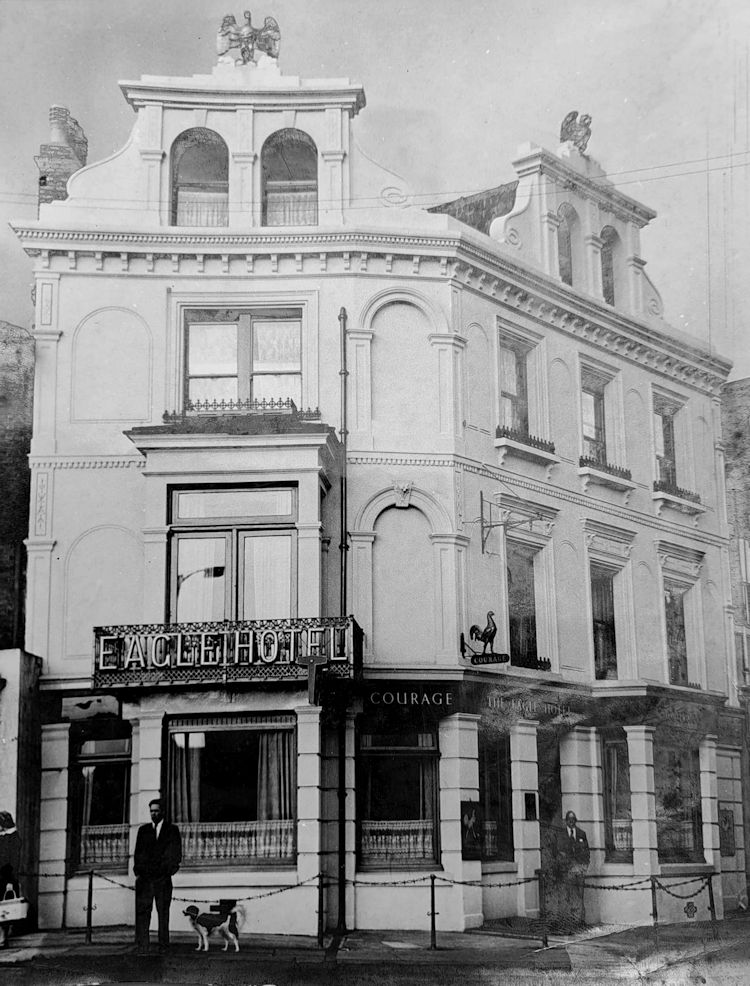 The above photo shows the "Eagle Hotel" before 1900. Just by the