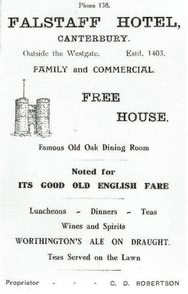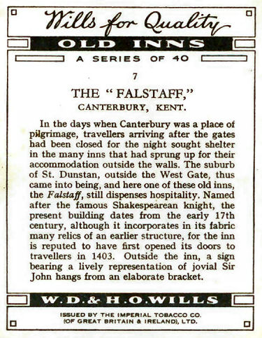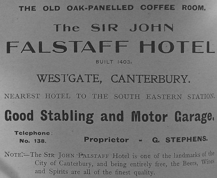 publick in general, that he is removed from the "Rose and Crown," Harbledown, to "Sir John Falstaff's, in Westgate, where he has laid in a