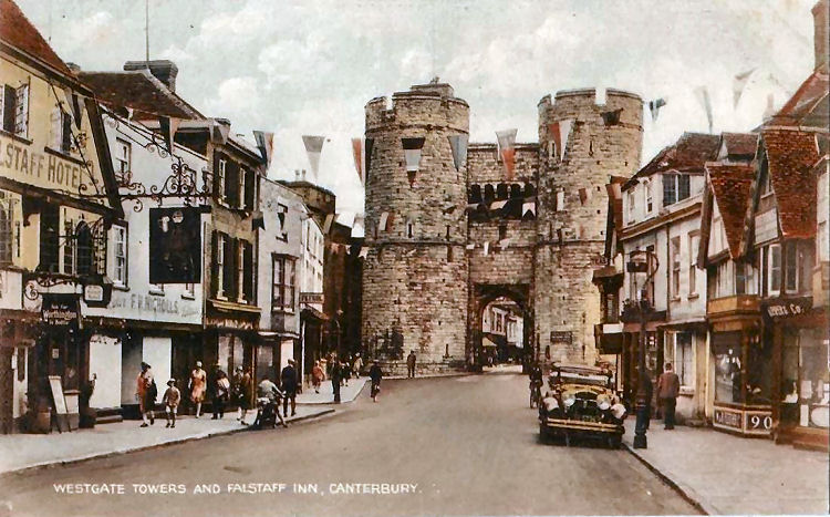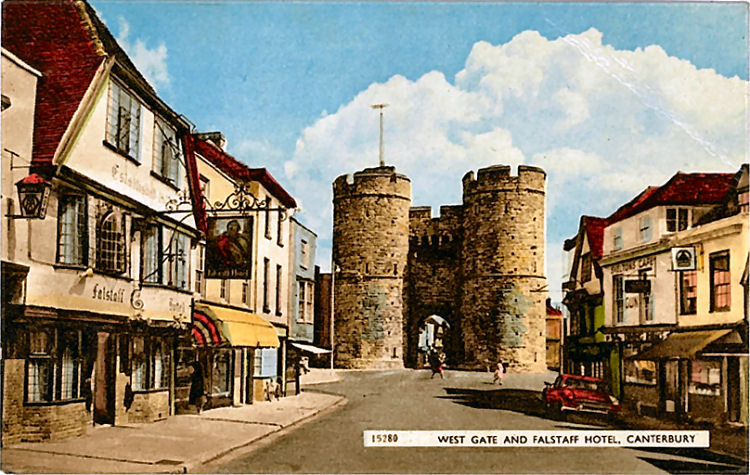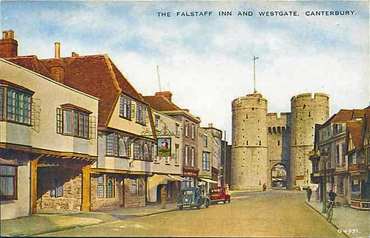Above postcard showing "Falstaff" and the Westgate, date unknown. |