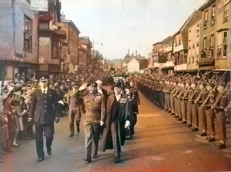 Above photo, 20 October 1945 showing procession with Field Marshall