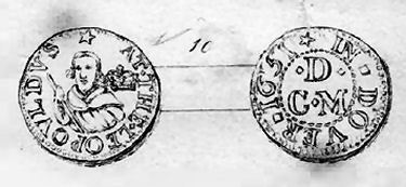 This shows on a token of 1651. A later farthing token of 1666 gave the initial of the host as G and MF. The token showed an image of the Emperors bust, and a crown.