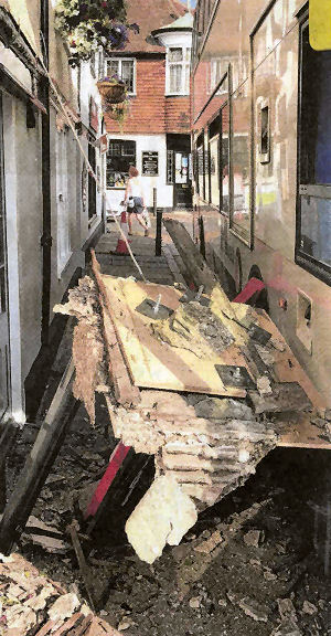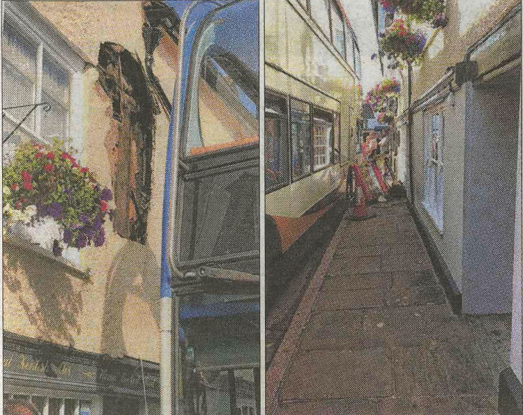 The "Market Inn" in Sandwich was hit by the number 14 Stagecoach bus en