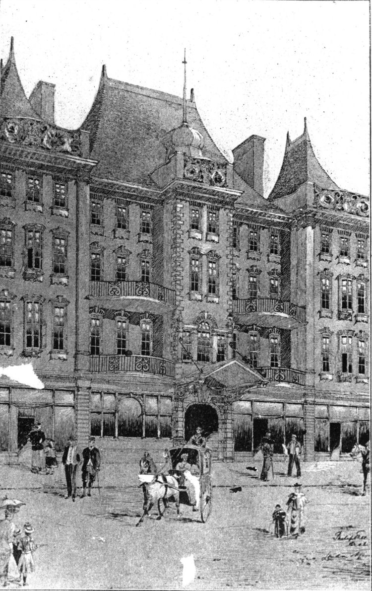 Above shows a drawing of the newly built Metropole Hotel, circa 1900. |