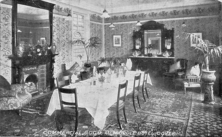 Above photo of the Commercial Room inside the Metropole Hotel, date unknown. By kind permission of the Dover Library. ILL/3588.