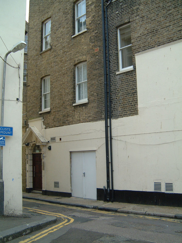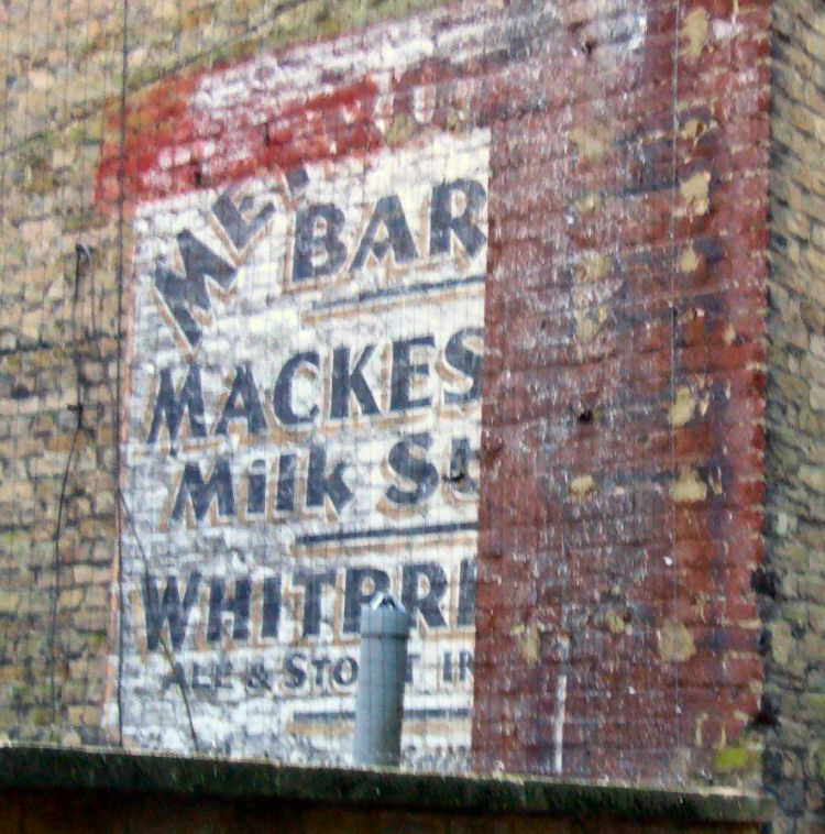 advertising Mackinson Stout, above the side entrance. The doorway being