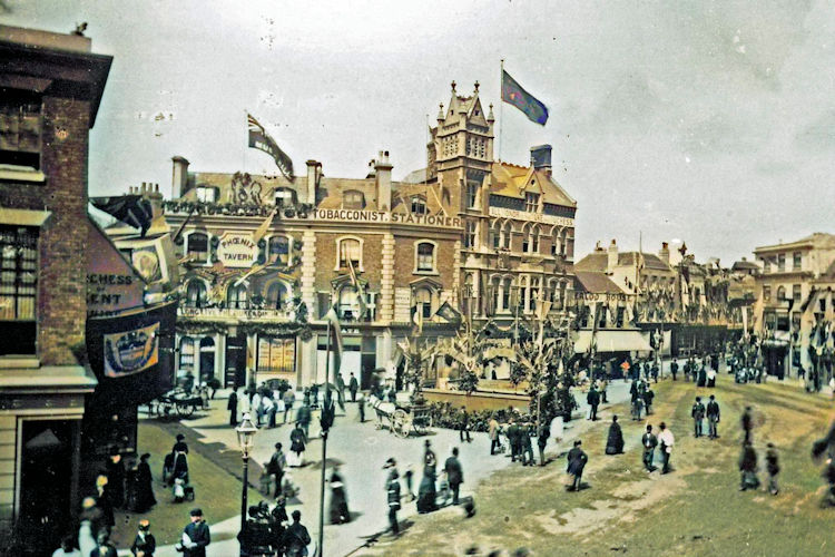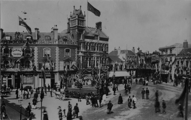 old Phoenix Tavern and music hall, the tobacconist and stationers