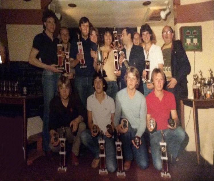 Above photo, date and people unknown. Darts trophies. |