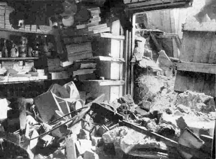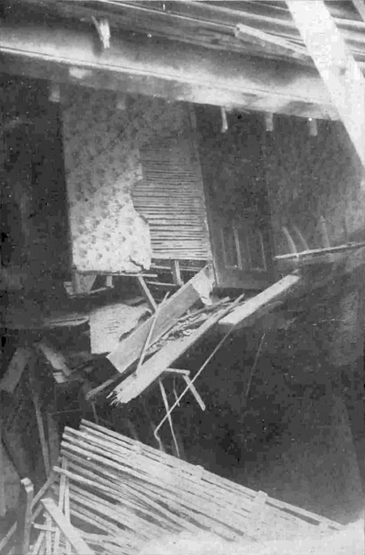 Above photo showing under a bedroom which another bomb passed. Wreckage