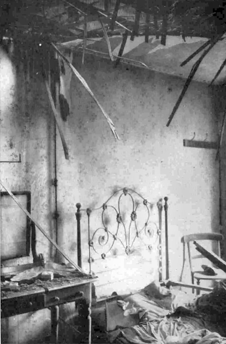 narrow escape. Miss Moffatt's bedroom after a bomb fell through it.