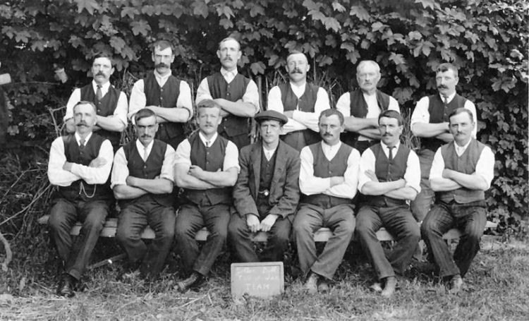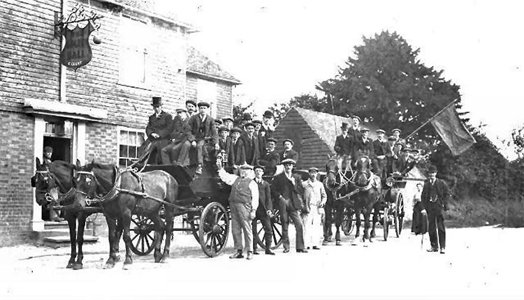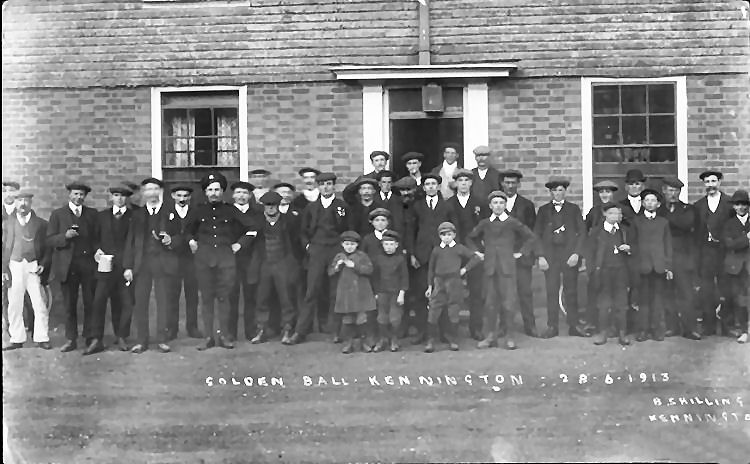 pickers posing outside the "Golden Ball" on the Canterbury Road.