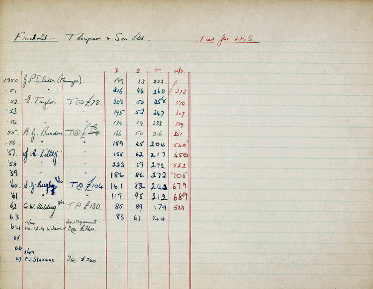 SLATER G P (manager) 1950-52