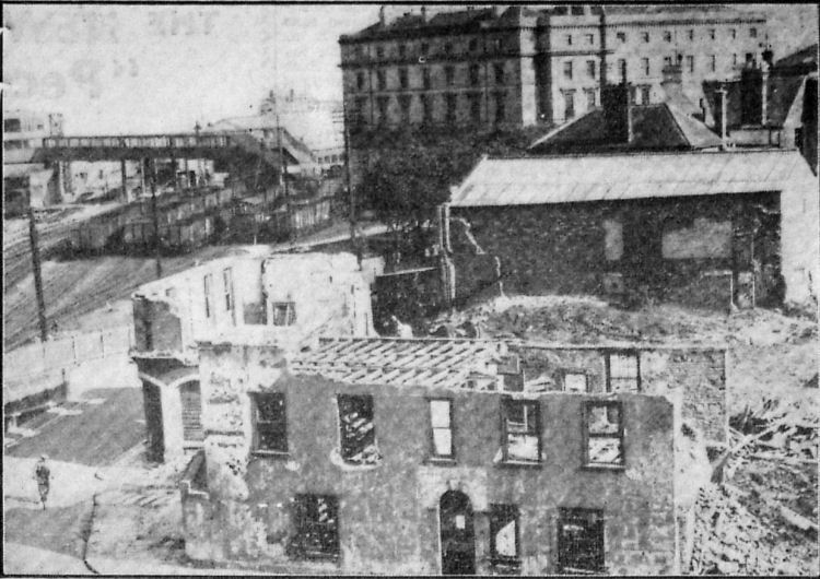 demolition in progress at the Royal Hotel flats in Clarence Place, and