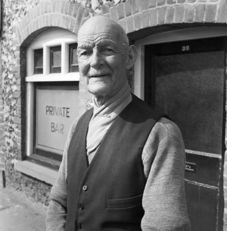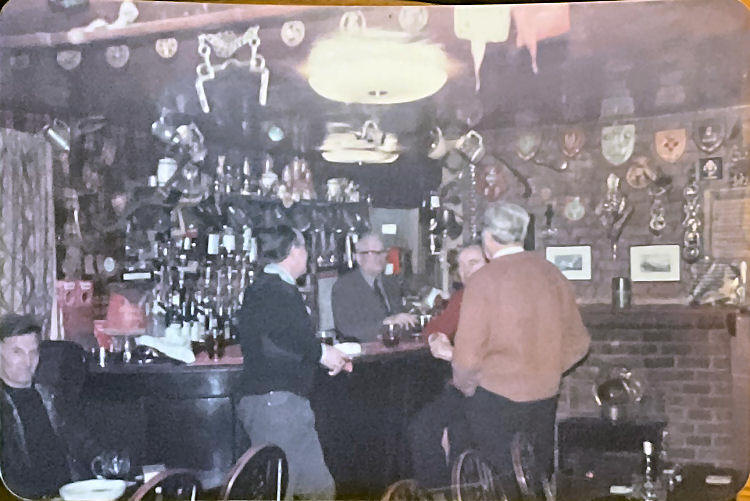 behind the bar, Len Hopkins in brown sweater ex B.R. cook, Roy Dench in