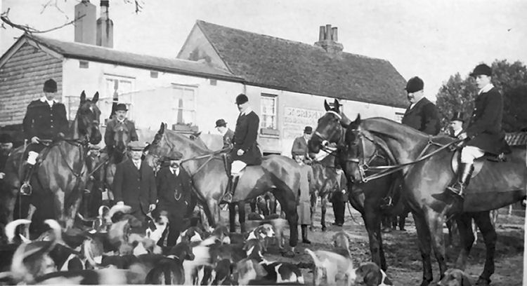 Above postcard, date unknown, showing a meet for the East Kent Foxhounds. |