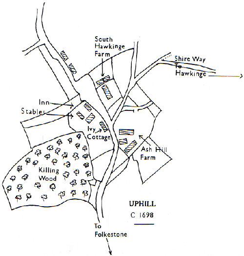 The first mention of an Inn at Uphill (now Hawkinge) is on a map dated about