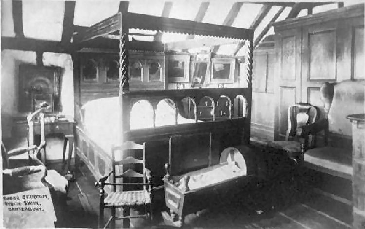 Above showing a Tudor Bedroom inside the "White Swan." Image appeared on